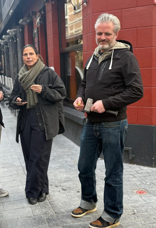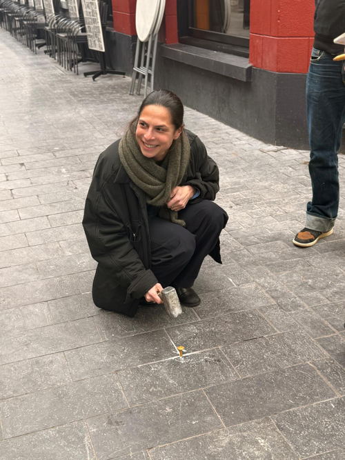 “De Muntstraat is een smalle wandelstraat met veel terrassen vlak naast elkaar,” zeggen Rikky en Eleni Evers, uitbaters van De Libertad. “Natuurlijk is een terras niet statisch en beweegt het mee met zijn klanten, maar als er twijfel of discussie ontstaat, maken die nagels nu meteen duidelijk waar ieders grens ligt.”