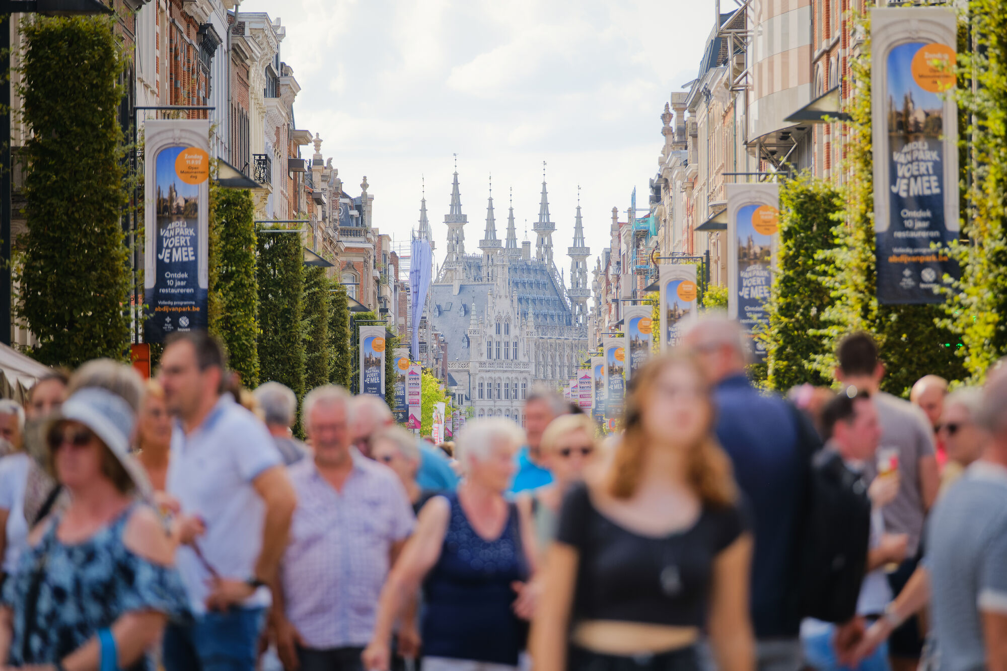 In de Leuvense binnenstad zijn handel en horeca volop aan zet. Tot 18 uur is er braderie in de winkelstraten, een feestmarkt in de Brusselsestraat en streekproducten op de Grote Markt. Op het Martelarenplein en de Bondgenotenlaan kunnen bezoekers snuisteren op de brocantemarkt en ‘makers’-standen.