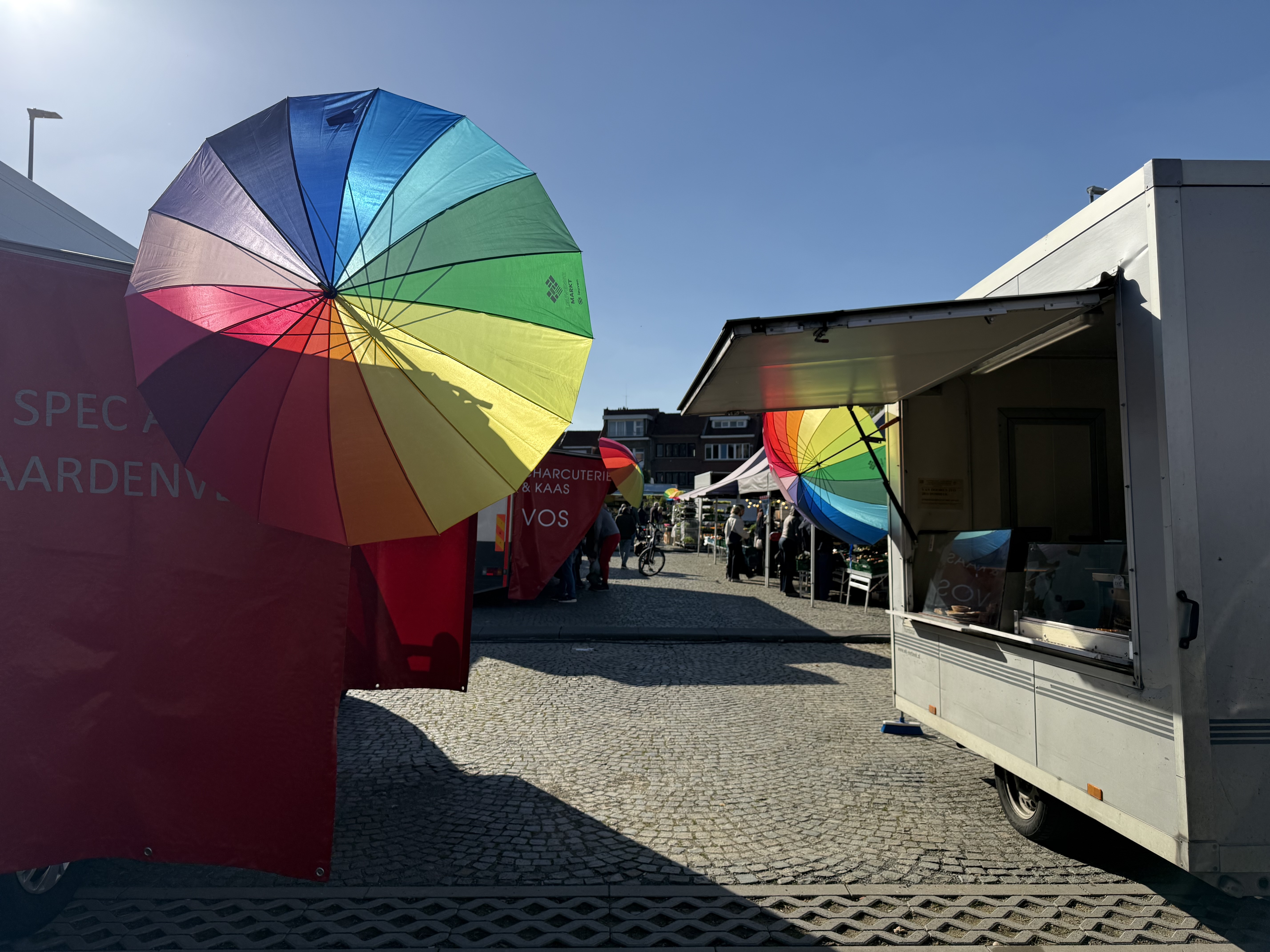 Om het thema visueel tot leven te brengen, worden de Leuvense markten aangekleed met kleurrijke elementen. Zo zorgen 200 opvallende regenboogparaplu’s voor een speelse en herkenbare sfeer op de markten.