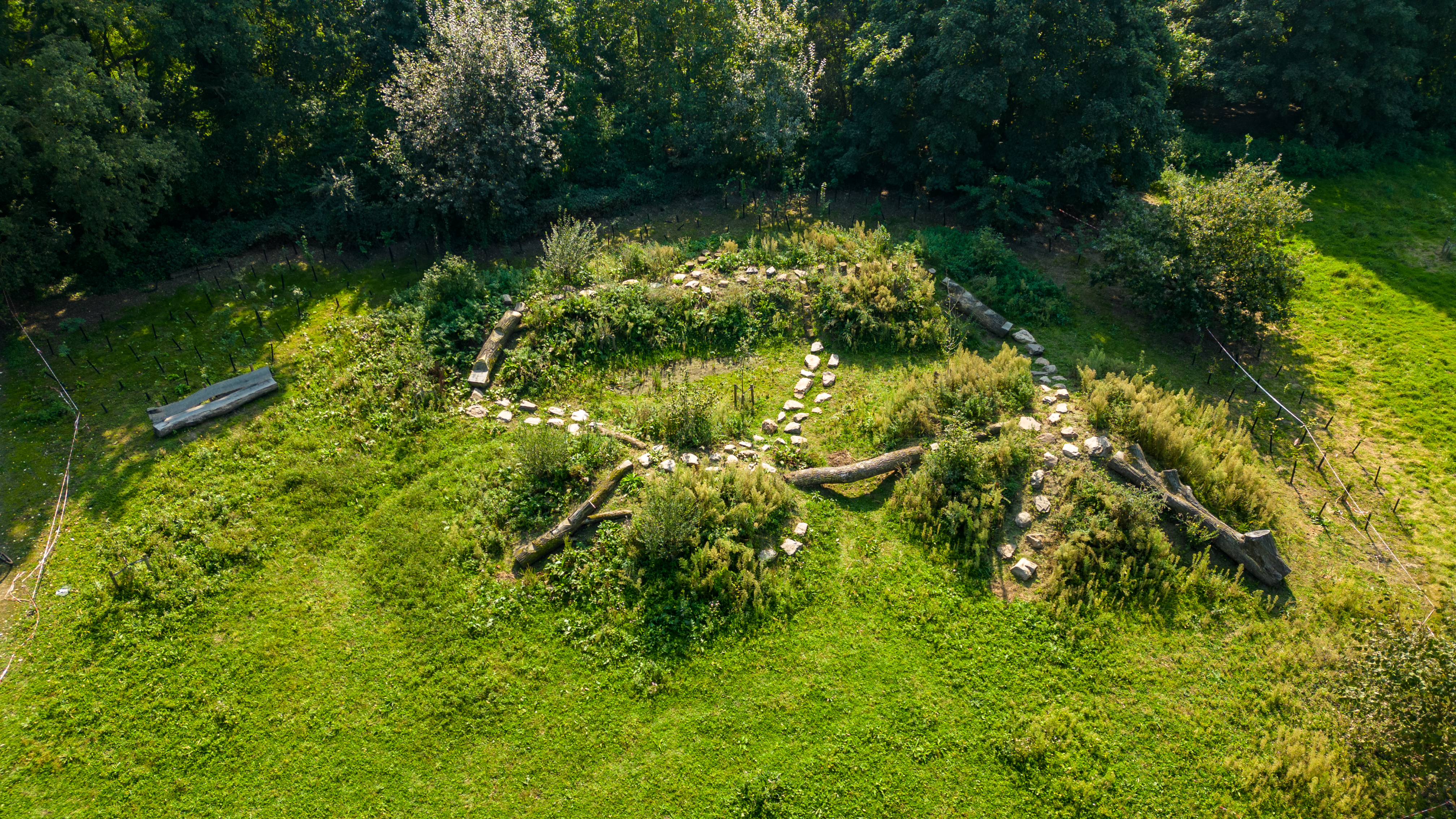 Het natuurpark is ingedeeld in drie zones. De eerste zone is een open veld, waar bal- en pleinspelen mogelijk zijn. Aan de randen groeien arboretumbomen en je vindt er verschillende zitelementen zoals boombanken en een buitenklasje. In de tweede zone kom je dan in de natuurlijke speelzone, waar kinderen kunnen ravotten, klauteren en verpozen. Wie nog verder gaat, komt in de derde, de meest stille zone. Daar staat het kunstwerk Aedicula, dat dankzij de recente aanplantingen mooi geïntegreerd werd in het landschap.