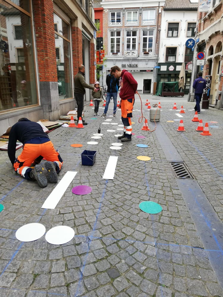 Het werd een vrolijk en uitdagend parcours voor jong en oud om opnieuw het plezier van spelen op straat te ontdekken. Het parcours loopt langs een massa stippen en lijnen om te volgen, om over te springen, om op te balanceren. Er kwam ook een hinkelpad bij, als nostalgische knipoog voor al wie vroeger hinkelde op de speelplaats. “We hopen dat jonge én minder jonge Leuvenaars zich zullen laten verleiden tot een hinkelspelletje”, lacht schepen Bieke Verlinden. “Het is geweldig voor de kinderen die zich op wandel in de stad even kunnen uitleven in een straat die helemaal voor hen gemaakt is en hen uitdaagt om te rennen, springen, balanceren, hinkelen …" "Maar we zien dat ook volwassenen zich laten verleiden om te spelen”, vult Denise Vandevoort aan. “Mama’s en papa’s, maar ook oma’s of opa’s die mee een sprongetje wagen, verliefde koppeltjes, studenten die niet aan de nostalgie van het hinkelpad kunnen weerstaan. Ieder kind – en, laat ons eerlijk zijn, ook iedere volwassene - geniet van spelen op straat. Spelen is een unieke manier om je je omgeving eigen te maken, om vol levenslust te genieten van je stad en jou daar thuis te voelen.”