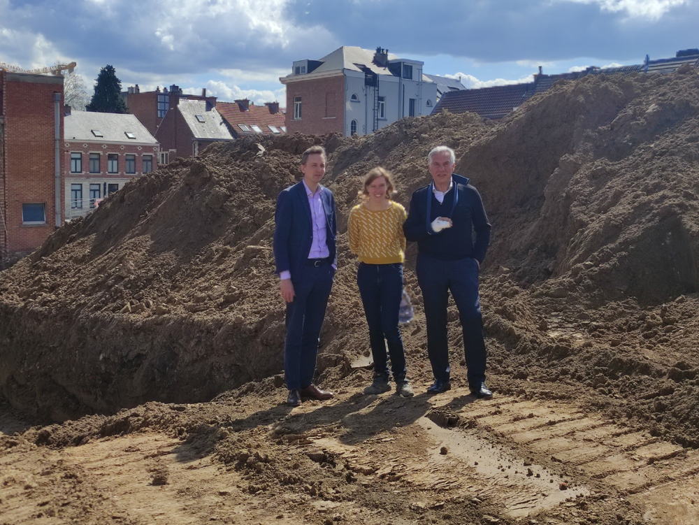 In het binnengebied tussen de Brusselsestraat, de Goudsbloemstraat, de Kaboutermansstraat en de Muurkruidstraat is er sinds kort heel wat werfactiviteit. Daar plant projectontwikkelaar ION een nieuwe stadswijk, genaamd Burenberg. “Naast het grote nieuwbouwproject krijgt ook erfgoed een nieuwe invulling. Zo vormt het klooster van de Broeders van Liefde samen met de voormalige drukkerij Acco en enkele andere eigendommen de basis voor dit stadsontwikkelingsproject. Maar eerst moet er een archeologisch onderzoek plaatsvinden”, legt schepen van ruimtelijk beleid en onroerend erfgoed Carl Devlies uit.