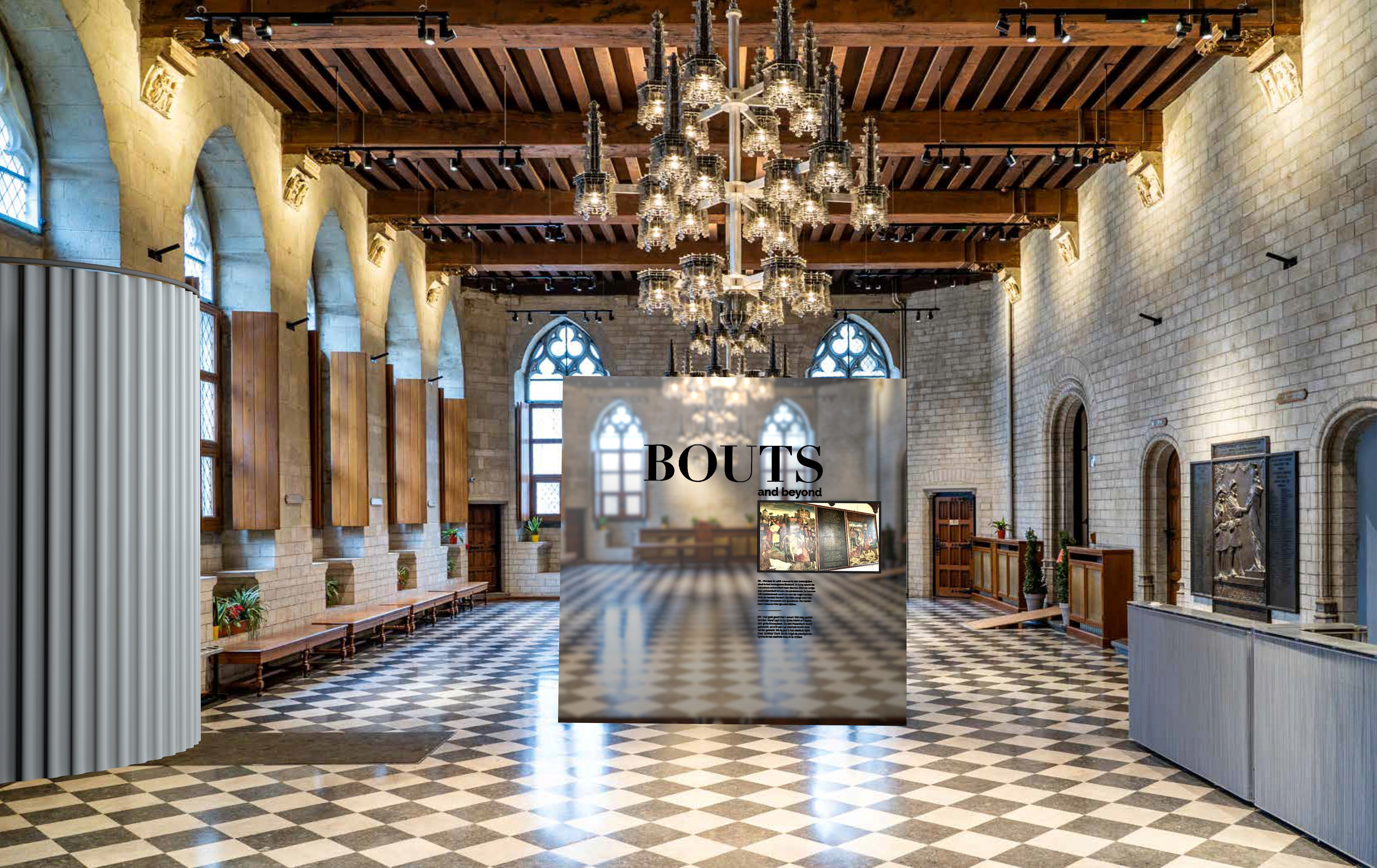 Onderweg maken de bezoekers kennis met verschillende figuren en perspectieven en worden zij uitgenodigd om na te denken over rechtvaardig oordelen vandaag. Een holografische projectie in samenwerking met KU[N]ST Leuven brengt Bouts op het einde van het parcours tot leven.