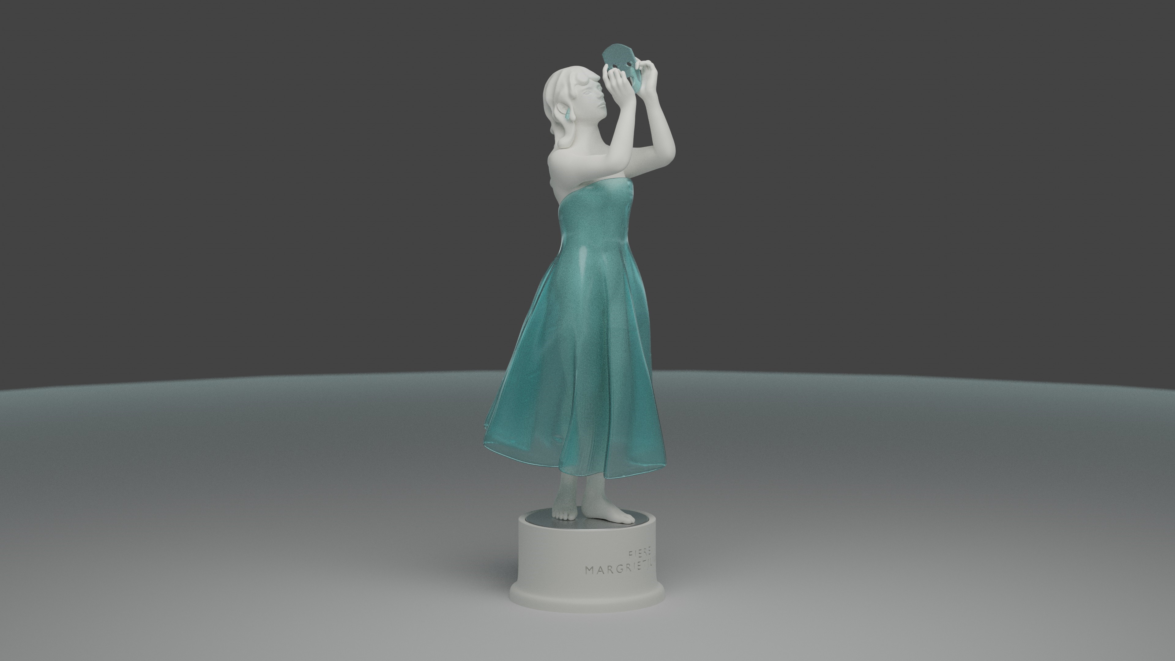 Het beeldje dat de laureaten in ontvangst mochten nemen, is gemaakt door Leuvens kunstenaar Maarten De Laet. Hij ontwierp het beeld zo dat het zowel aan de Fiere Margriet als aan het toneelgebeuren refereert: “In de kunsten stellen wij graag vragen, laten we onze nieuwe ideeën graag horen. Het moet niet altijd hetzelfde zijn. Voor ons kan het anders. Het allermooiste aan theater blijft de unieke interpretatie van het verhaal, het bekijken van iets door een andere blik. Dat is ook hoe mijn moderne Margriet is ontstaan.”